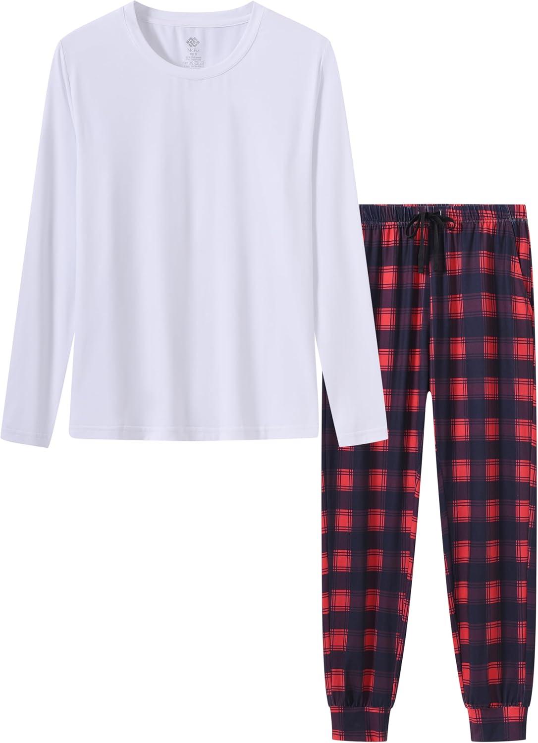 MoFiz Women’s Long Sleeve Pajamas Sets with Plaid Pants Comfy Sleepwear Nightwear 2 Piece Pjs with Pockets(Ad-white)