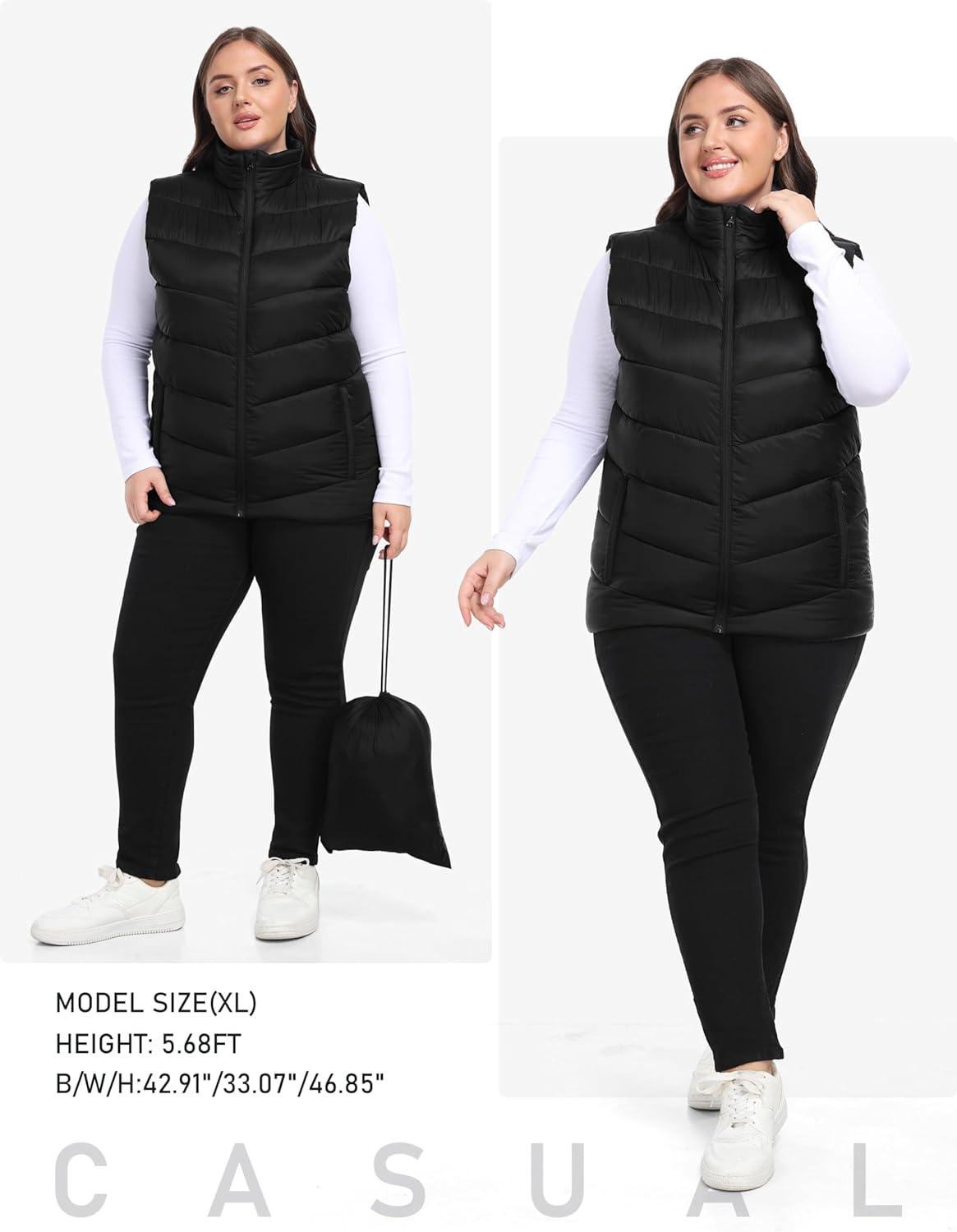 MoFiz Womens Plus Size Puffer Vest Packable Quilted Puffy Vest Lightweight Winter Outerwear Vests for Hiking Vacation(Black)