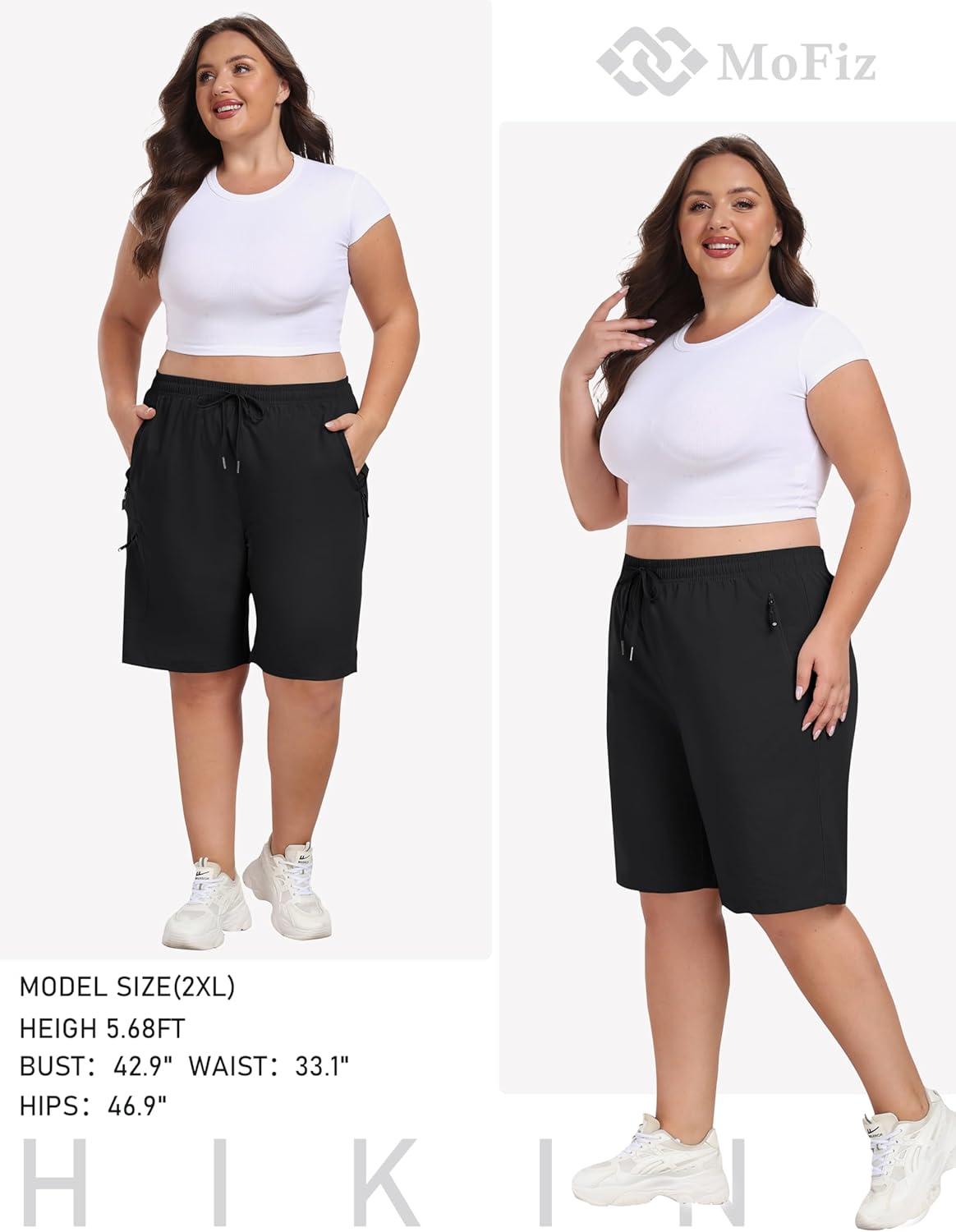 MoFiz Women’s Plus Size Shorts Hiking Cargo Shorts Quick Dry Golf Active Shorts Lightweight Summer Shorts with Pockets(Black)