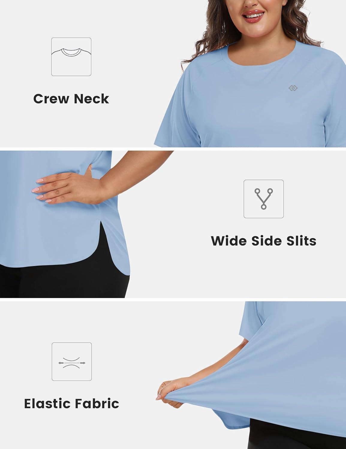 MoFiz Women’s Plus Size Workout Tops Short Sleeve Running Shirts UPF 50+ Hiking T-Shirts Quick Dry Athletic Top(Sky Blue)