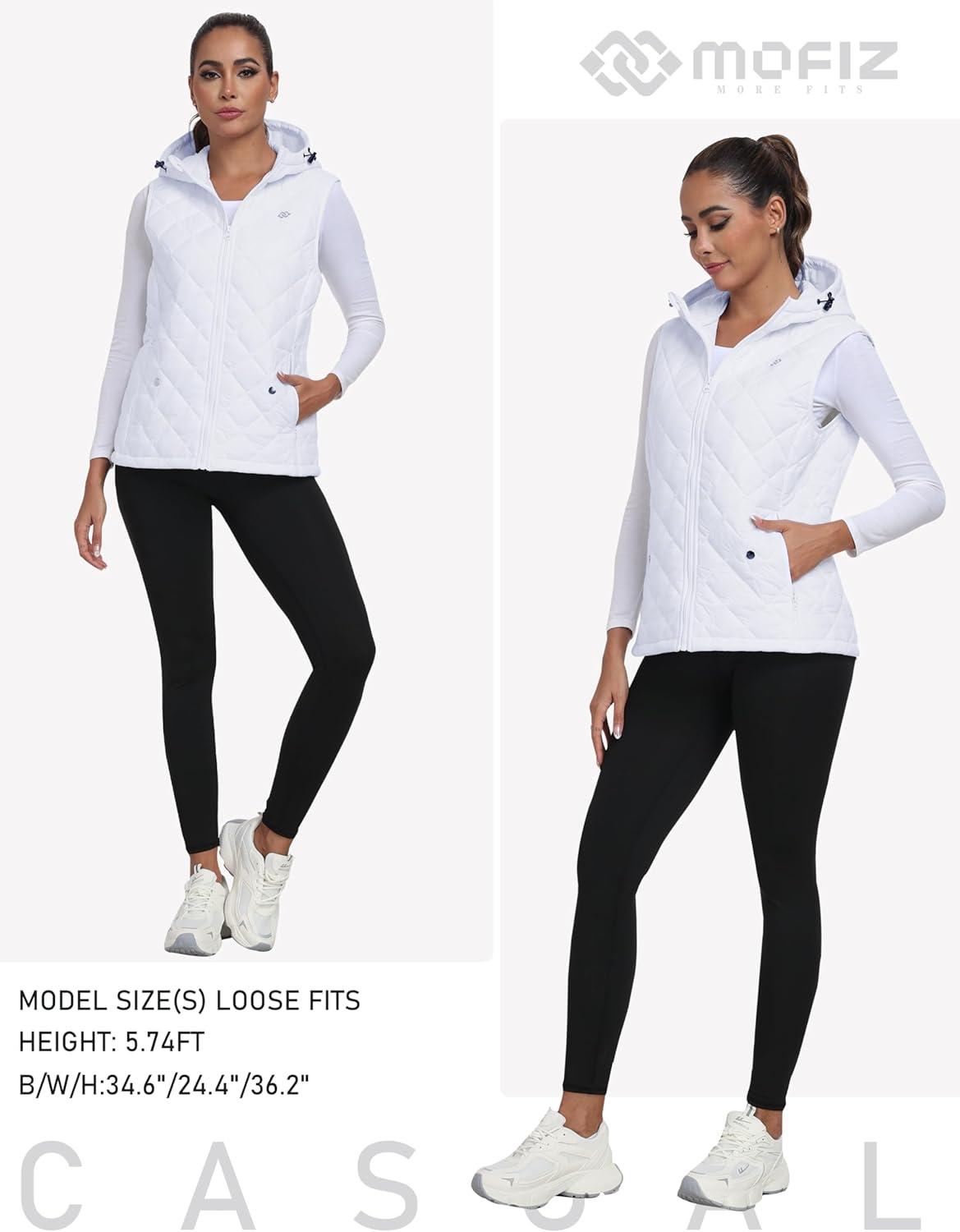 MoFiz Women’s Puffer Vest Hooded Running Vests Sleeveless Lightweight Jacket Fall Winter(White)