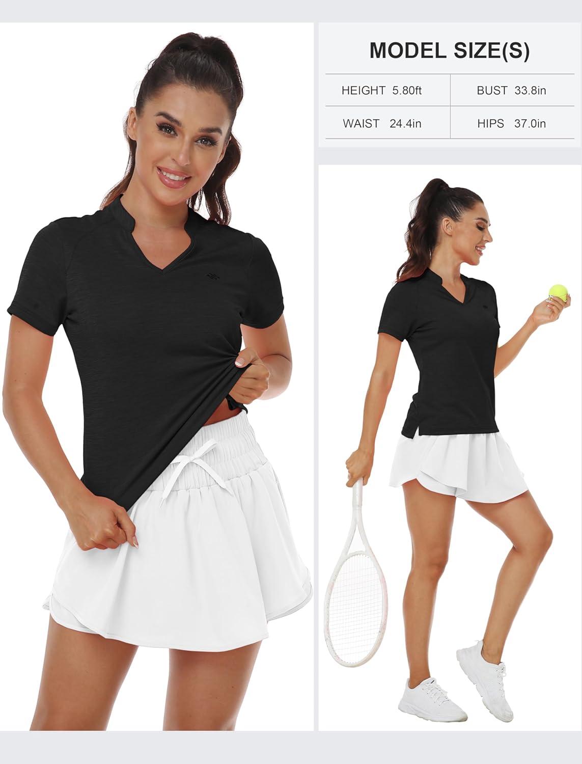 MoFiz Womens Short Sleeve Golf Polo Shirts Quick Dry Camo Lightweight UPF 50+ Tennis Sports Athletic Tops Casual(C-black)