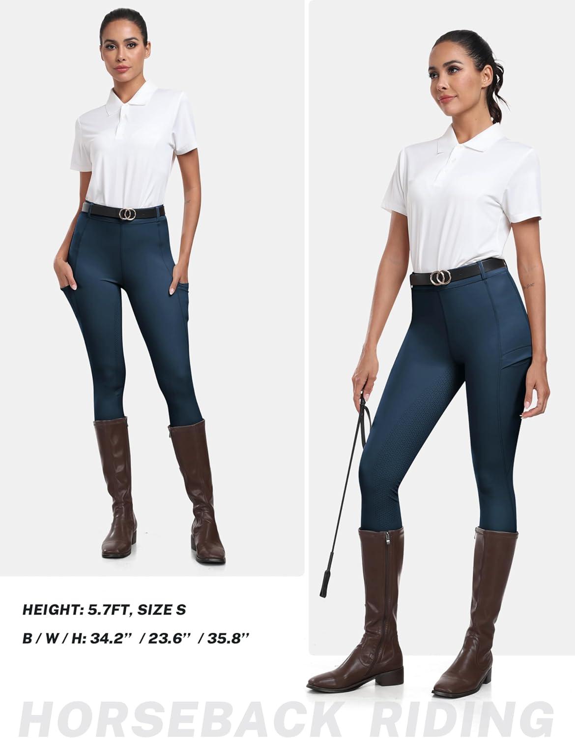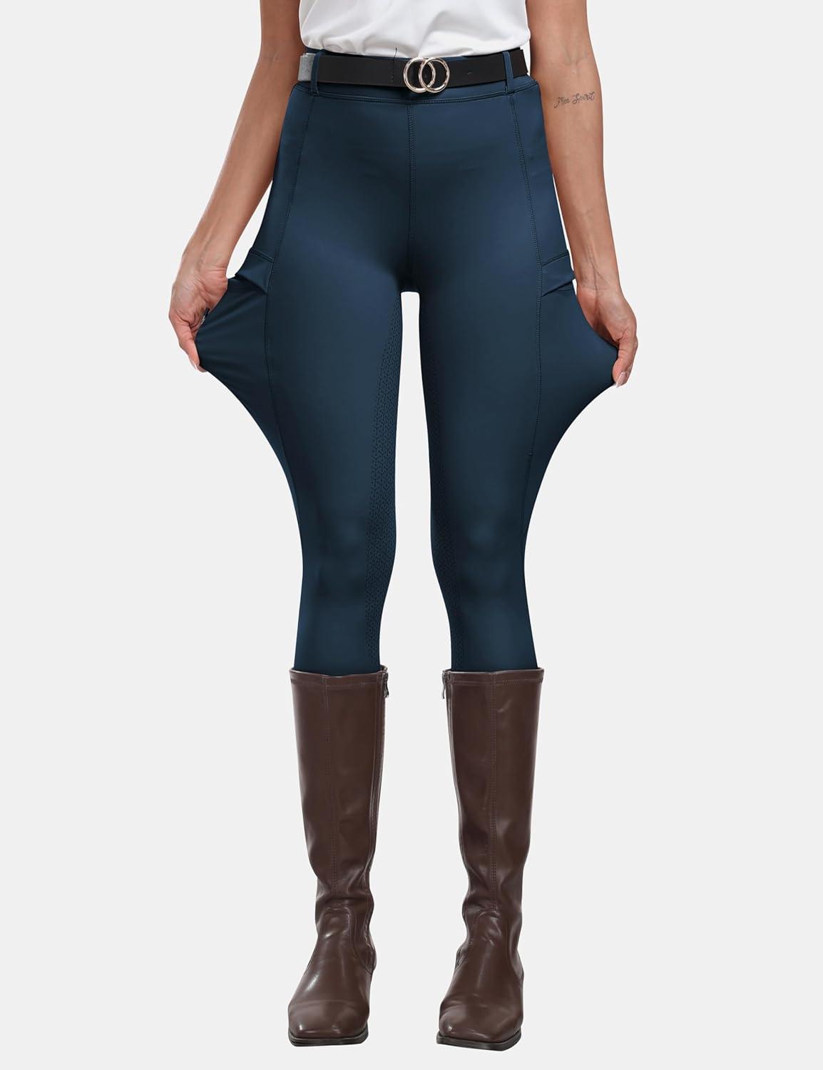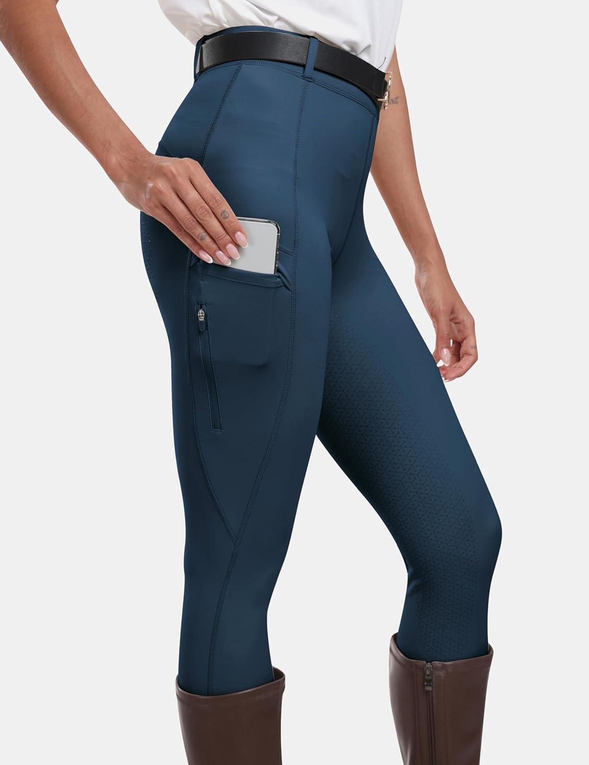 MoFiz Women’s Silicone Full Seat Horse Riding Pants Zipper Pockets Equestrian Breeches Riding Tights(Navy Blue)