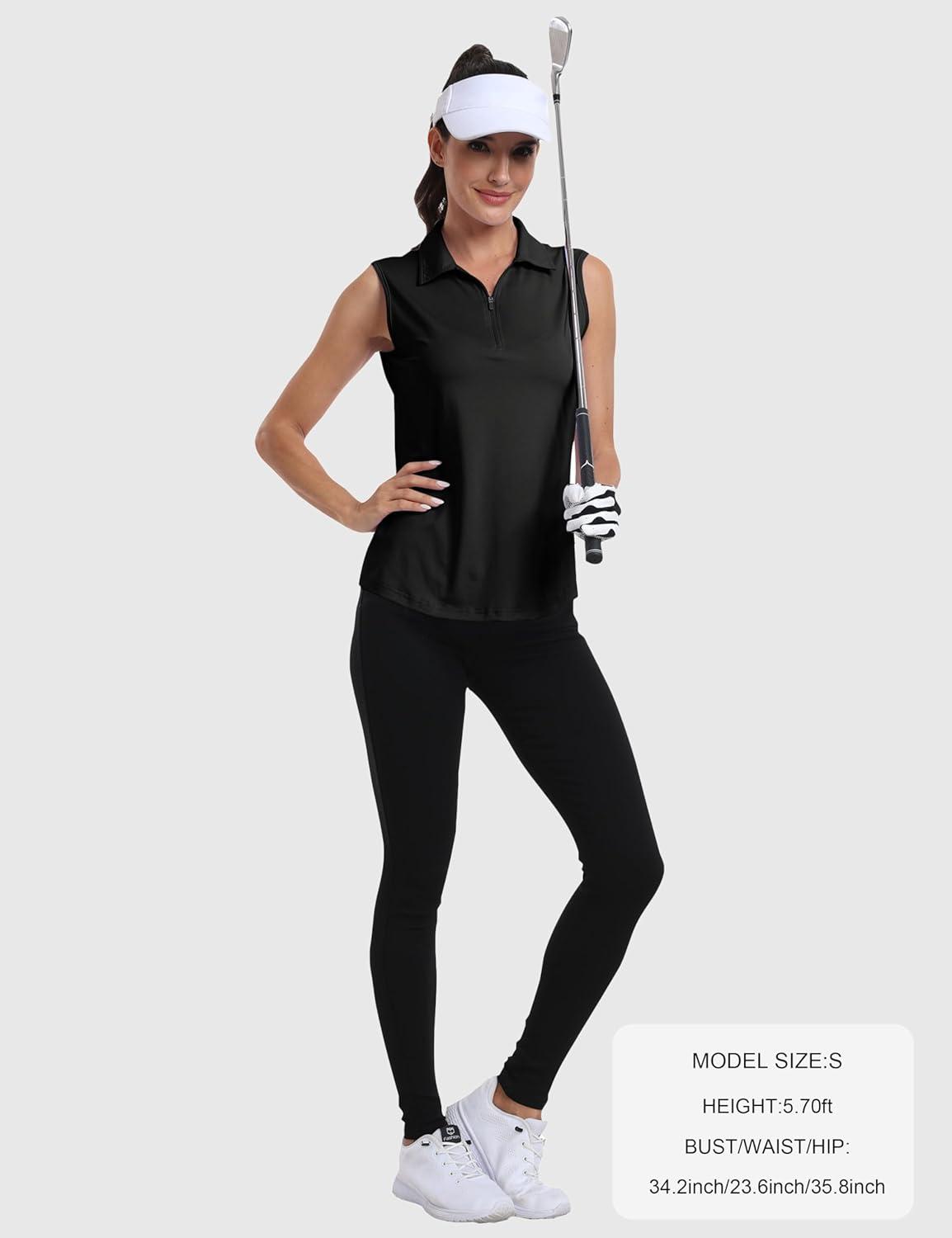 MoFiz Women’s Sleeveless Golf Polo Shirts 1/4 Zip Floral Tennis Workout Golf Tank Top(Black)