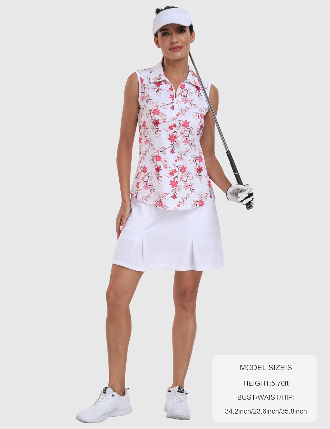 MoFiz Women’s Sleeveless Golf Polo Shirts 1/4 Zip Floral Tennis Workout Golf Tank Top(Floral-1)