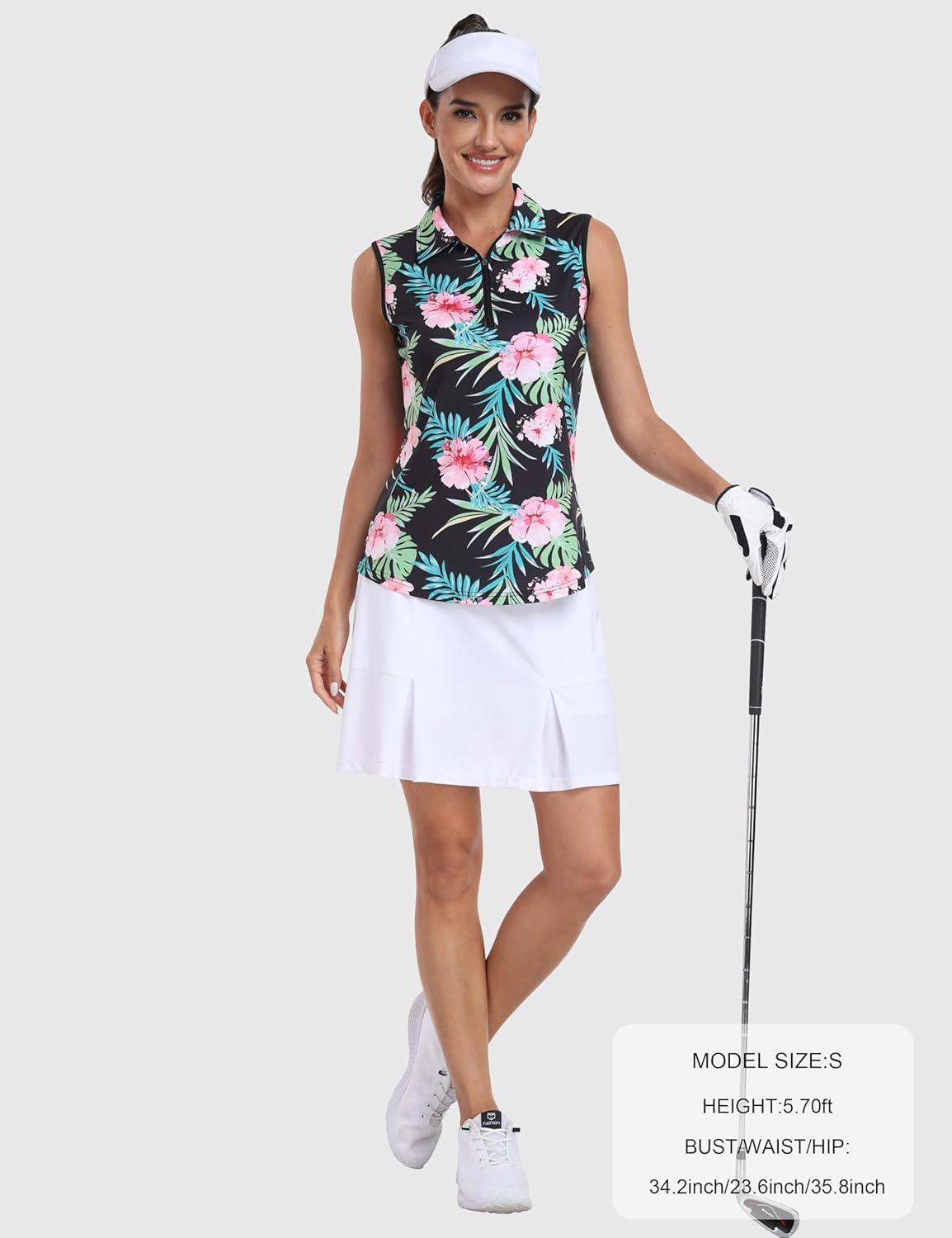 MoFiz Women’s Sleeveless Golf Polo Shirts 1/4 Zip Floral Tennis Workout Golf Tank Top(Floral-3)