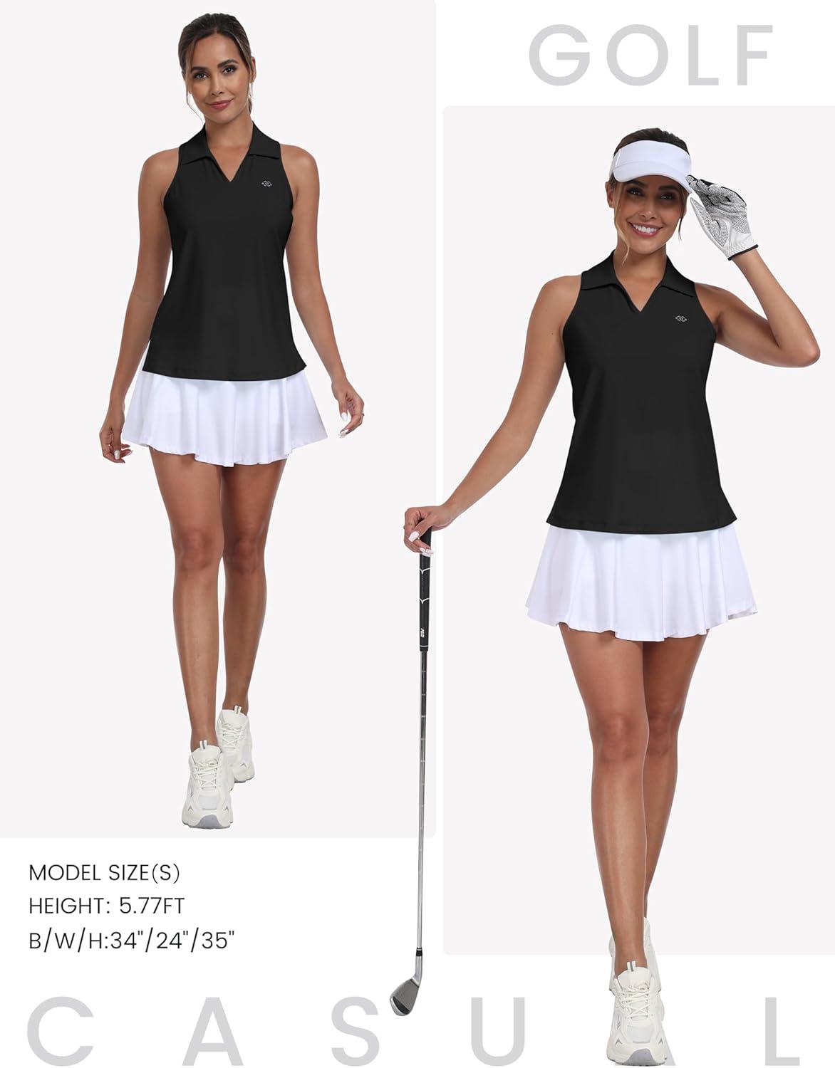 MoFiz Women’s Sleeveless Golf Polo Shirts UPF50+ Athletic Tennis Tops Lightweight Racerback Tank Tops Pickleball Shirt(X-black)