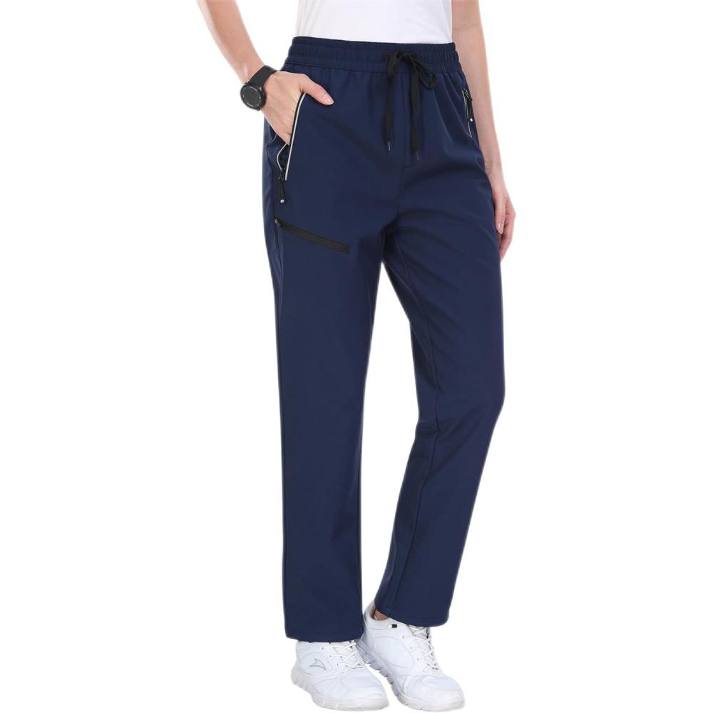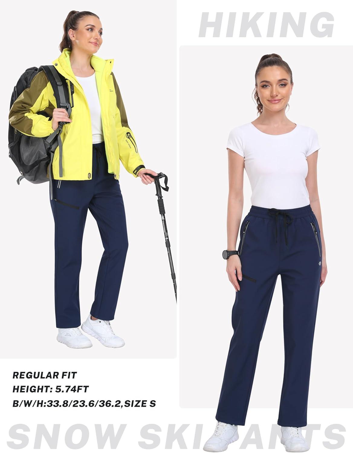 MoFiz Women’s Waterproof Insulated Snow Pants Fleece Lined Winter Ski Hiking Pants Warm Outdoor Softshell with Elastic Waist(Navy Blue)