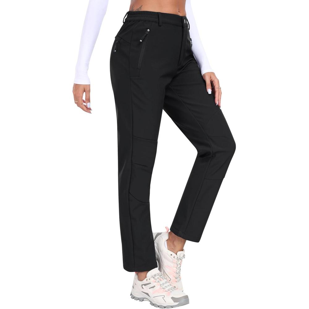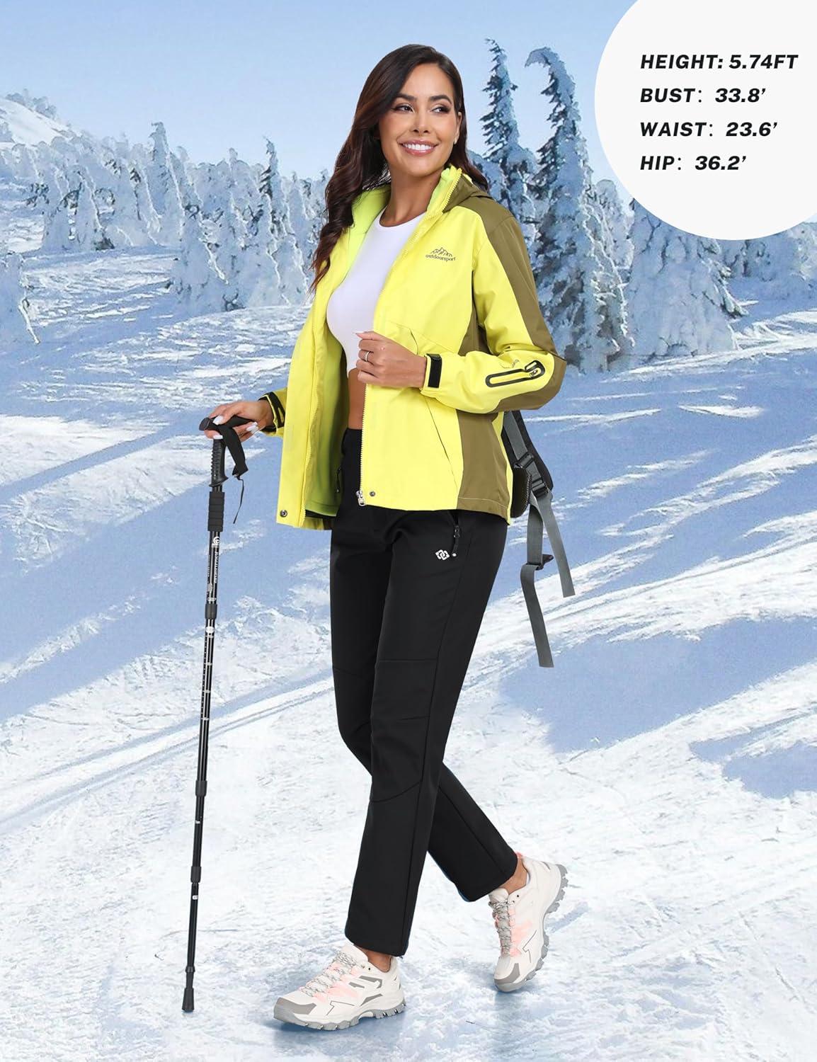 MoFiz Women’s Waterproof Insulated Snow Ski Pants Fleece Lined Winter Hiking Fishing Pants Elastic Waist with Zipper Pockets(Black)