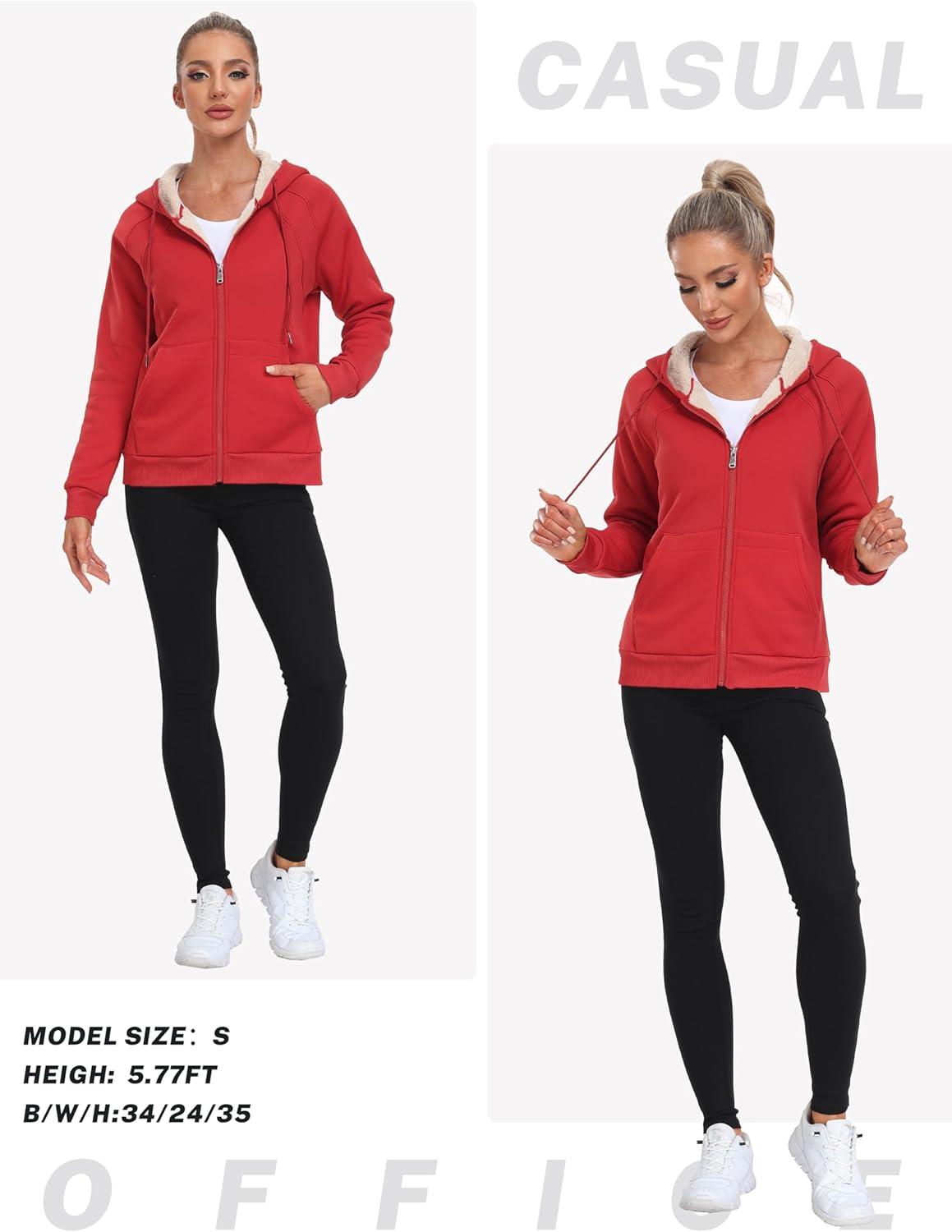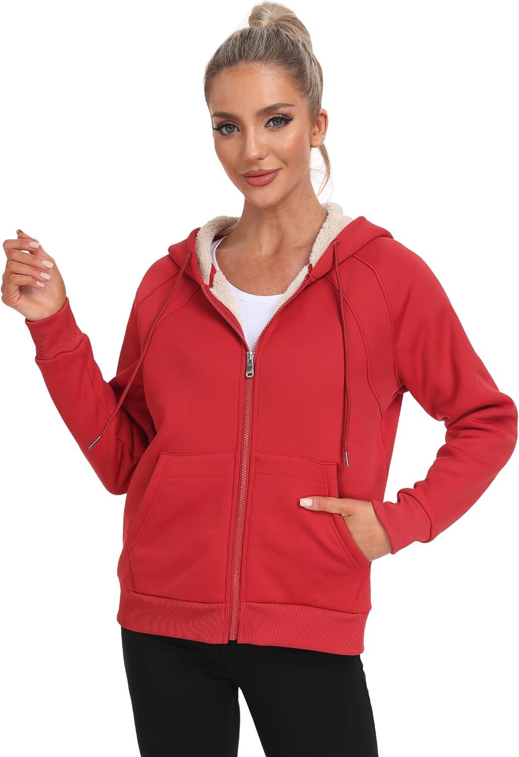 MoFiz Womens Zip up Hoodie Fleece Lined Warm Jackets Winter Thick Hoodies with Pockets(Red)