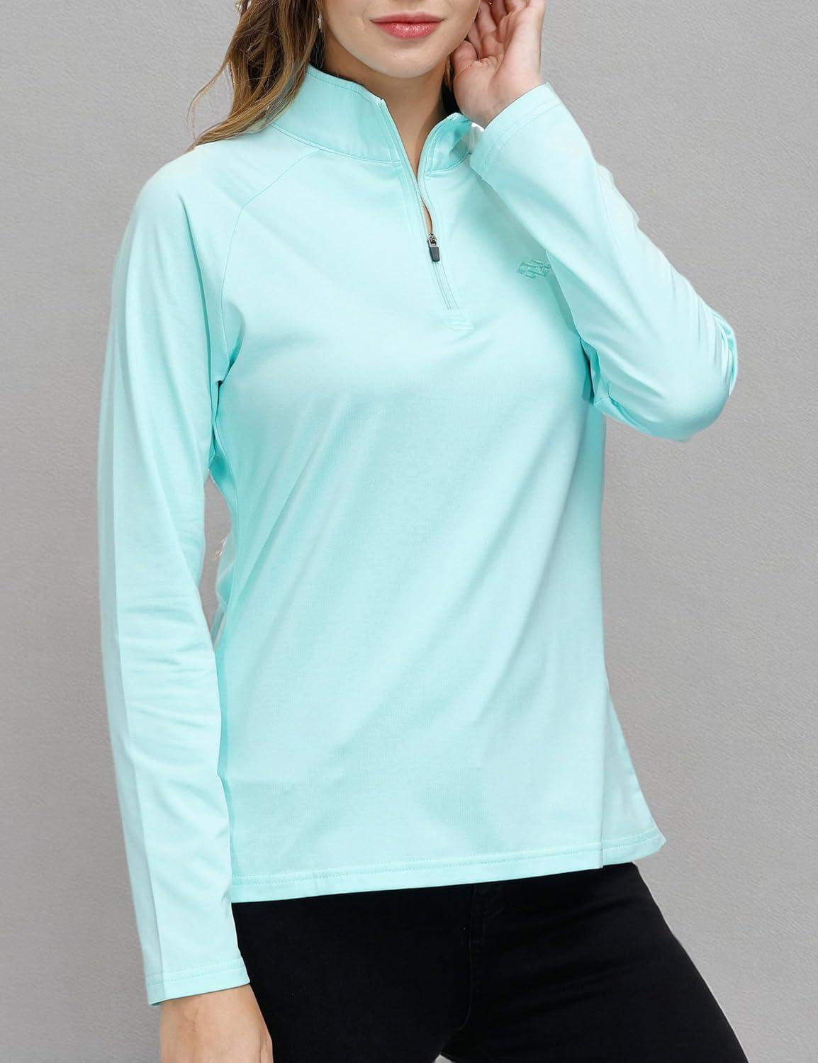 Womens 1/4 Zip Golf Shirt Long Sleeve Lightweight Golf Pullover Outdoor Athletic Tennis Polo Shirts(Green)