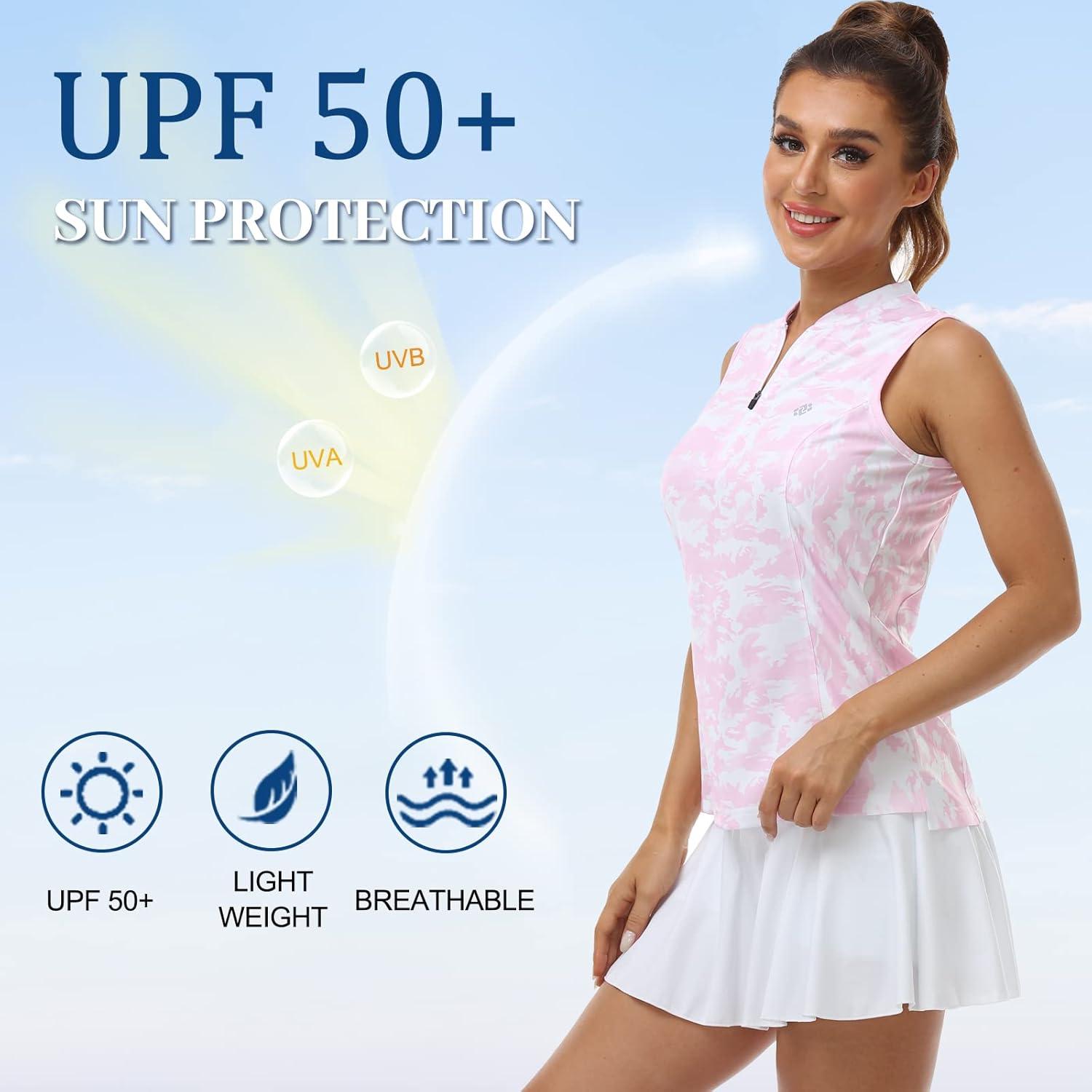 Women’s Sleeveless Tennis Shirt Golf Shirts for Women Quick Dry Pickleball Shirts UPF 50+ Sportswear T-Shirts with Zipper(Aa-camouflage Pink)