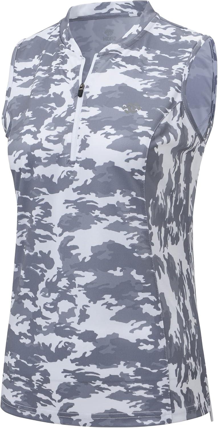 Women’s Sleeveless Tennis Shirt Golf Shirts for Women Quick Dry Pickleball Shirts UPF 50+ Sportswear T-Shirts with Zipper(Ad-camouflage Grey)