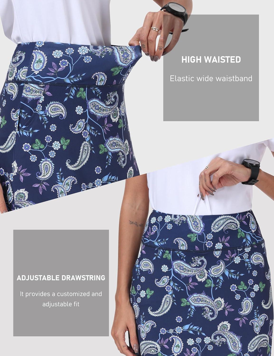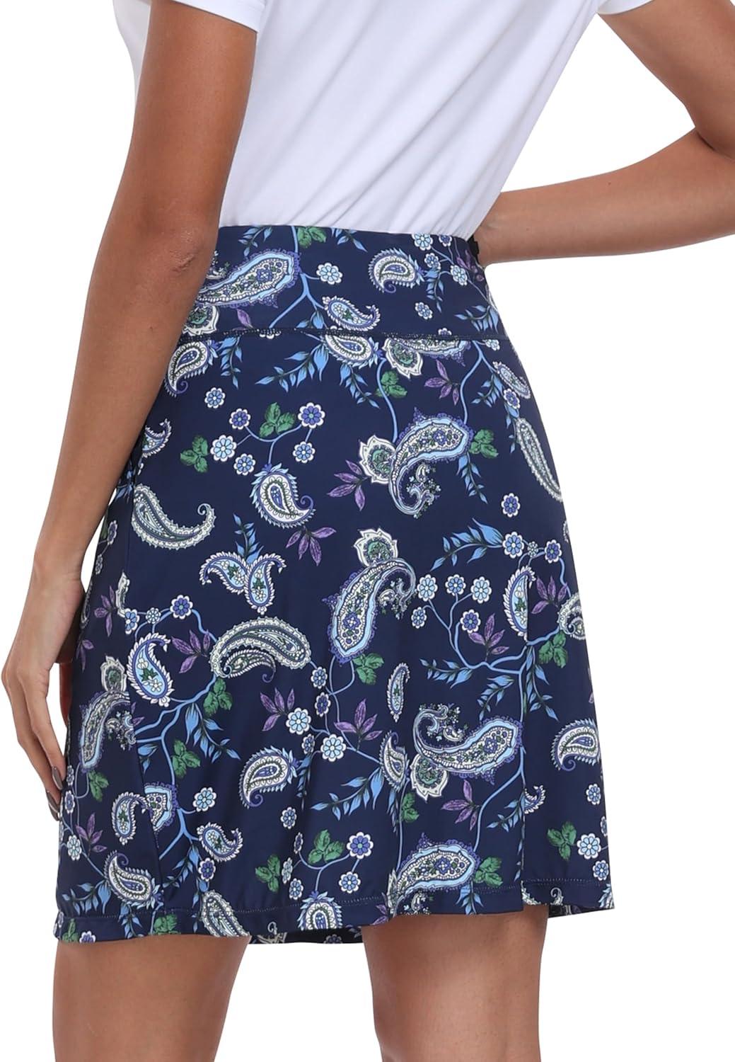 MoFiz Women’s 20″ Knee Length Skorts Skirt High Waisted Golf Tennis Skort Athletic Skirt for Sports Workout Summer Casual with Pockets, Navy Blue Paisley 2XL
