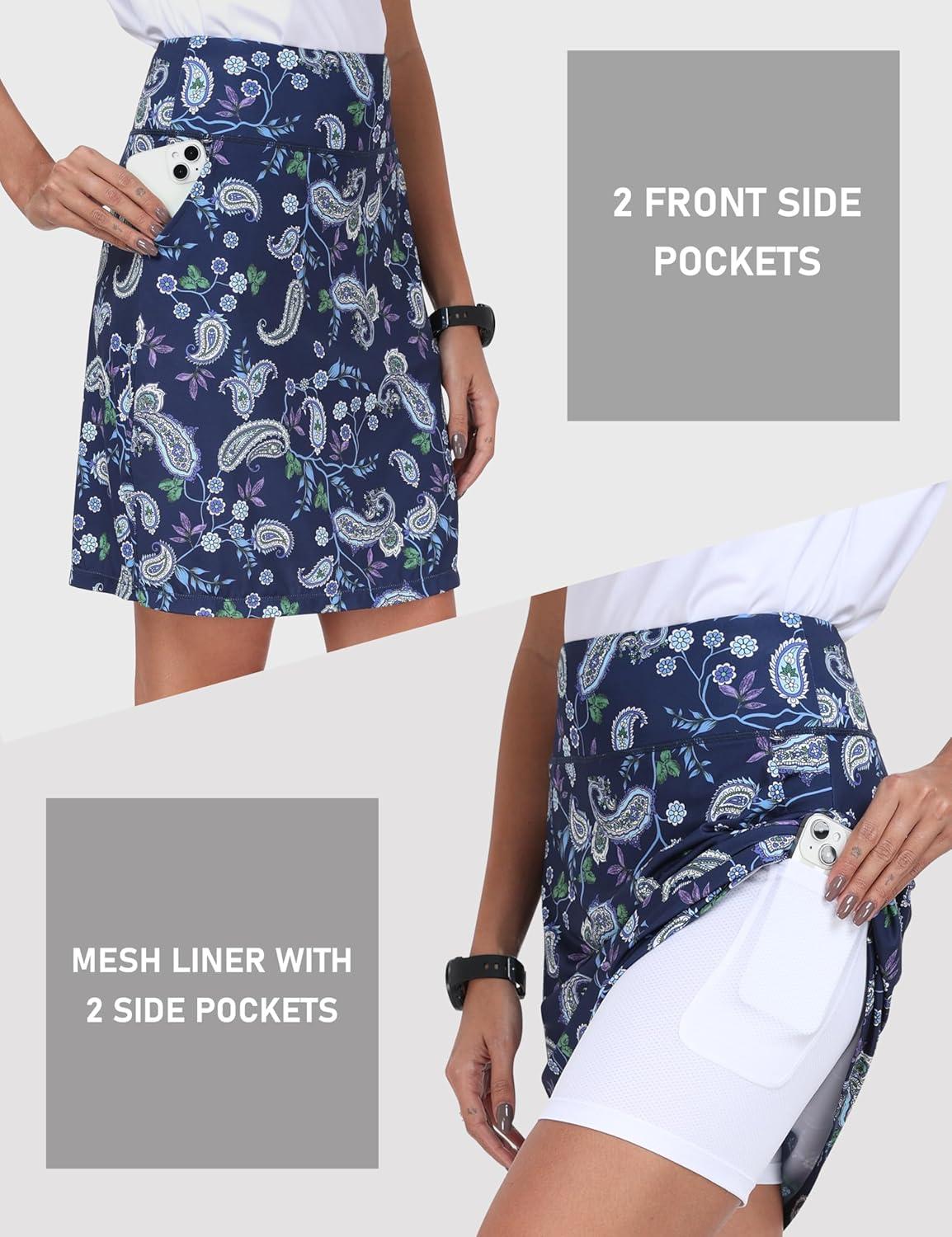 • MoFiz Women’s 20″ Knee Length Skorts Skirt High Waisted Golf Tennis Skort Athletic Skirt for Sports Workout Summer Casual with Pockets, Navy Blue Paisley 2XL